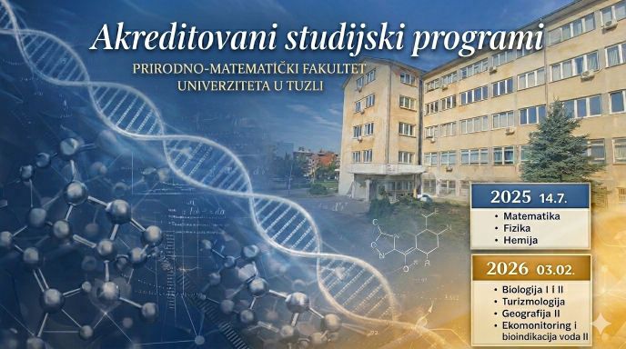 Prirodno-matematički fakultet Univerziteta u Tuzli već decenijama gradi i njeguje visoke standarde kvaliteta u obrazovanju i naučnoistraživačkom radu. Kroz savremene studijske programe, kontinuirano unapređenje nastavnih procesa i aktivno učešće u naučnim projektima, potvrđujemo opredijeljenost ka razvoju kompetentnih i konkurentnih kadrova.